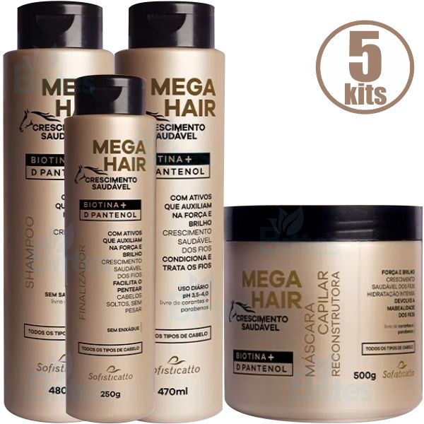 5 KIT MEGA HAIR SOFISTICATTO COSMÉTICOS CRESCIMENTO SAUDÁVEL ATACADO